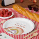 Die niedlichen Boho Rainbow Peach Blush Birthday Paper Teller verfügen über ein bezauberndes Duo aus Regenbogen in Rosa-, Rost-, Senf-, Aqua- und Marinetönen sowie moderner Kalligraphie.
