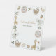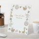 Mit diesem bezaubernden Boho Safari-Tierdesign mit handgemalten Dschungeltieren rund um das Schild, darunter ein Schlamm, Giraffe, Löwe und Elefant, kreieren Sie das perfekte geschlechtsneutrale Baby Dusche Pedestal Sign. Copyright Elegant Invites, alle Rechte vorbehalten.