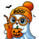 Niedliche Bougee Ghost Halloween Geist mit Pumpkin & Drink | Fall Sublimierung Design für Kinder, Shirts & Handwerk Machen Sie Ihr Halloween-Design mit diesem Niedlichen Ghost PNG besonders reizvoll! Dieses Bougee-Geist ist voller Charme und Herbstvibes und besticht durch seine elegante, orangefarbene Brille, eine gemütliche Pom-Pom-Mütze und einen leckeren Drink und den Jack-o’-Laterne-Kürbis!