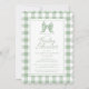 Niedlich Bow Pastel Green Gingham Karo Pattern Einladung