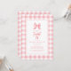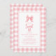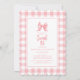 Niedlich Bow Pastel Pink White Gingham Karo Geburt Einladung