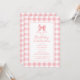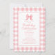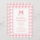 Niedlich Bow Pastel Pink White Gingham Karo Geburt Einladung