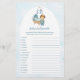 Fügen Sie Ihrer Babydusche eine spielerische Drehung mit diesem Niedlichen Blue Baby Shower Word Scramble Game hinzu, das in einem süsslichen Kinderzimmer-Thema mit blauem Krippenmobil, Wolken und Sternen entworfen wurde! Die Gäste werden bei dieser lustigen und leichtgepflegten Aktivität mit den üblichen Wörtern der Babys spielen, die sich perfekt für Duschen, Sprinklen oder Gender-Enthüllungen eignen. Dieses hübsche, an Ihre Blue Kinderzimmer Baby Shower Collection angepasste Party-Spiel ist eine großartige Ergänzung und leicht zu drucken oder zu personalisieren.
