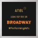 Wunderbares Poster, das einen aufstrebenden Stern ankündigt! Suchen Sie mich auf Broadway - mit "BROADWAY" im Broadway Lights Schriftart fertig gestellt. Personalisieren mit dem Empfängernamen. Vorhang auf!