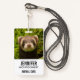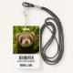 Benennen Sie Abzeichen mit einem bezaubernden Foto mit einem kleinen braunen Freret stehend in einem langen Gras. Niedlich wie möglich!