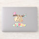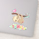 Ein Vinyl-Aufkleber mit einer Abbildung eines niedlichen braunen Hülls, der auf dem Kopf hängt. Dieser lustige kleine Typ hält an einem Ast fest, der auf der einen Seite einen kleinen rosa Vogel und auf der anderen Seite einen Rosenbuket im Doodle-Stil hat. Unter ihnen ist eine Anordnung von bunten, handgezeichnet Blume. Dieser bezaubernde Faultier hat auch rosa rosa, rosa Wangen und 3 niedliche kleine Herzen auf seinem Hintern.