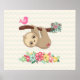 Ein Poster mit einer Abbildung eines niedlichen braunen Faultiers, der auf dem Kopf hängt. Dieser lustige kleine Typ hält an einem Ast fest, der auf der einen Seite einen kleinen rosa Vogel und auf der anderen Seite einen Rosenbuket im Doodle-Stil hat. Unter ihnen ist eine Anordnung von bunten, handgezeichnet Blume. Dieser bezaubernde Faultier hat auch rosa rosa, rosa Wangen und 3 niedliche kleine Herzen auf seinem Hintern.