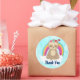 Eine niedliche Cartoon-Illustration eines meditierenden Schlamms. Eine Krone Wildblumen auf dem Kopf tragen, friedlich auf einer weißen Wolke schwebend, mit einem bunten Regenbogen dahinter. Ein paar Herzen in der Nähe. Friedlich und glücklich. Ein hellblauer Grunge-Stil. Text sagt" Danke. Text kann bearbeitet oder gelöscht werden.