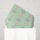 Gewebepapier mit einem weißem weißem weißem Hasen mit einem großen rosa Ballon, der in der Luft nach oben treibt. Ein extravagantes Banner mit einem kleinen blauen Vogel sagt Happy Borthday. Set auf hellgrünem Hintergrund.
