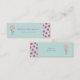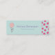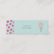 Skinny Business Cardding mit einem skurrilen weißen Hase mit einem großen rosa Ballon, der in der Luft schweben. Rosa Polka-Punktkreise schaffen eine niedliche und charmante Grenze. Set auf hellblauem Hintergrund.