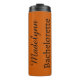 Beginnen Sie das Party mit diesem niedlichen Thermalwäscher, der sich leicht für Ihren Junggeselinnen-Abschied, Ihre Nachtzeit oder das Mädchenwochenende personalisieren lässt! Der moderne minimalistische Stil zeichnet sich durch einen personalisierten Namen mit fett schwarzen Buchstaben auf einem verbrannten orangen Hintergrund aus. Personalisieren Sie das Programm mit zwei Zeilen benutzerdefiniertem Text. Alle Text- und Hintergrundfarben können nach Ihren Wünschen bearbeitet werden.