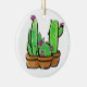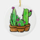 Eine Abbildung von drei niedlichen Kakteen mit rosa Blume in kleinen Terrakottöpfen.