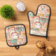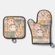 Niedlich Cat Zuhause Patchwork Gemütlicher Pastell Ofenhandschuh & Topflappen-Set