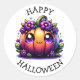Ein bezaubernder Kawaii Chibi Orangenkürbis mit violetten Blumen darauf Happy Halloween Aufkleber. Fügen Sie zu Halloween Kartenumschlägen oder Gastgeschenk-Taschen eine niedliche Touch hinzu.