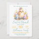 Mit diesen niedlichen Hasen-Hasen-Osterbrunch-Einladungen laden Sie zum Ostersonntagsbrunch ein. Das Design ist ein niedliches Baby-Kick in Aquarellfarbe , farbenfrohe Ostereier und blumenreiche Wildblumen. Eine schöne Einladung für Ihre Familie und Freunde. Einfach mit Ihren eigenen Party-Details anpassen. Auf der Rückseite können weitere Party-Details wie extravagante Kleiderkostüme oder Diätanforderungen hinzugefügt werden. Text in Blau und Gelb, kann aber bei Bedarf geändert werden.