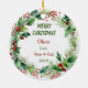 Hier ist ein bezauberndes personalisiertes Ornament für jeden, der einen kleinen Cockapoo-Hund Liebe. Das Vorderbild ist ein Cockapoo-Welpe mit einem rot-weißen Hut aus dem Weihnachtsmann. Die Jungtiere sind in einem hübschen Heiligen- und Rotbeerenkrez gerahmt. Auf der Rückseite des Ornaments befindet sich das gleiche Kranzbild mit dem eigenen Text in grün und rot.