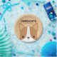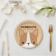 Ein niedliches Design, das Ihren Tag aufhellt. Dieses Design bietet niedliche kleine Corgi Hund Cartoon-Abbildung mit personalisiertem Namen in braunen modernen sans serif Schriftart Stil auf hellbraunem Hintergrund. Perfekter Geburtstagsgeschirr für Kinder.