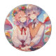 Junge und Mädchen, die Händchen in der Liebe halten, sitzen in einer Reihe von Vintagen Pilzen und Blume im Hintergrund.