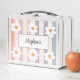 Diese niedliche Lunchbox mit weißen Gänsen auf gestreiftem Hintergrund in Pastellfarben. Einfach mit Ihrem Namen anpassbar. Ideal für Zurück zur Schule oder als Geschenk.
