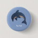 Dieser runde Button-Backknopf ist hellblau mit einem niedlichen tiefblauen glitzernden Delphin mit weißem Magen und schwarz-weißem wirbeln Auge. Passen Sie Ihren Text mit der Vorlage an.