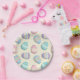 Diese Teller sind mit niedlich dekorierten Ostereiern in Pastellfarben auf Gelb gestaltet.