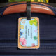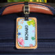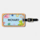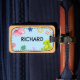 Niedliches und lustiges Dinosours Design speziell für Kinder mit blauem Hintergrund. Name, Telefon und E-Mail können personalisiert sein.
