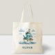 Personalisierter bezaubernder Kapitän Dino Sailboat Tote Tasche! Stellen Sie sich einen charmanten Dinosaurier-Kapitän vor, der an Bord eines charmanten Segelbootes durch die Hohe See fährt. Dieses faszinierende Design verbindet Beständigkeit mit Abenteuer, perfekt zum inspirier fantasievollen Spiels. Set segelt mit Captain Dino Sailboat zu endlosen Abenteuern.