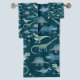 Triceratops, Tyrannosaurus rex, Diplodocus, Spinosaurus und Stegosaurus-Muster auf dunkelgrünem, aquamarinem Hintergrund, perfekt für Ihren Lieblingspaläontologen. Originelle Kunst von Nic Squirrell.