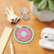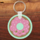 Schlüsselanhänger mit einem niedlichen Donut-Design auf einem minzgrünen Hintergrund.