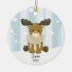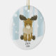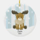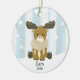 Niedliche Elche Weihnachtsschmuck umgeben von Winterbäumen und Schneeuntergrund. Personalisieren Sie mit Name und Jahr.