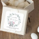 Niedlicher Aufkleber für Ihr Mädchen Dusche danke Ihnen Karten und Gastgeschenke mit "A Sweet Little Danke" in einer Mischung aus moderner Typografie und einem stilvollen Drehbuch mit einem Herzschlag, und einer Aquarellfarbe eines rosa Babyelefanten in einem Kranz von Salbei-grünem Eukalyptus-Grün. Persönlich mit dem Namen der Mutter und dem Datum der Dusche.