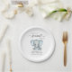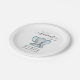 Niedliche Teller für Ihre Babydusche mit "A Sweet Little Peanut Is On Your Way" in sanft grauer Typografie und einem stylischen Drehbuch mit Wimpern und einer pastellblauen Aquarellfarbe eines Babyelefanten. Personalisieren Sie den Namen und das Duschdatum der künftigen Mutter in schlichter grauer Typografie.