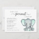 Eine niedliche, geschlechtsneutrale Kinderduscheinladung mit "A Sweet Little Peanut Is On its Way" in sanft grauer Typografie und einem stilvollen Swash-Skript sowie einer pastellfarbenen, minzgrünen Aquarellfarbe eines Babyelefanten. Fügen Sie die Namen von Mutter und Vater und Dusche Details in einfachen modernen grauen Typografie.