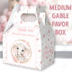 Niedliche, mittelgroße Greifbox mit einem kleinen Elefantenmädchen und Blume, sanfte Pastellfarben pink und beige "golden", schönes, niedliches und elegantes Design, das für die Babydusche eines Mädchens so ansprechend ist. Sie können aus 3 Größen dieser Gable-Gefälligkeitsboxen wählen. Personalisieren Sie den Text einfach. Das Party ist sehr schön und gut ausgestattet. Kate Eden Art