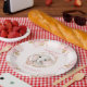 1. Geburtstagspapier-Teller mit einem niedlichen Elefantenmädchen und Blume, Rose, in sanften Pastellfarben, Rosa und Beige auf hellrosa Untergründen. Schönes, niedliches und elegantes Design. Personalisieren Sie den Text einfach. Kate Eden Art