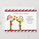Das ist eine schöne Weihnachtszeit-Party Einladung. Es hat einen rot-weißen Streifen Hintergrund. Dann gibt es einen schwarzen dünnen Rand mit einem weißen Zentrum. Da ist dieses niedliche Mädchen, das Geschenke hält. Neben ihr ist dies ein niedlicher Junge, der das Gleiche tut. Die Elfen sind rot und grün gekleidet und tragen Weihnachtsmannmützen. Personalisieren Sie die Party-Informationen neben ihnen. Karo die vielen anderen Designs und Produkte, die wir in Weihnachten Einladungen haben. © JW Illustrationen