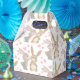 Niedliche Kaninchen küssen sich. Der Hintergrund ist weiß mit rosa Herzmustern