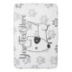 Niedlicher englischer Bull Terrier, weiß mit schwarzem Augenpflaster, mit grauem Pfotenhintergrund...klassisch! Passen Sie Ihre Wünsche an (auch den gesamten Text löschen).