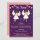 Erleben Sie Ihre Gäste mit dieser Zwillingsdusche, die mit hübschen kleinen Feen und lebendigen Elementen vor lila Hintergrund aufwartet. Fügen Sie einfach Ihre Veranstaltungsdetails zu dieser einfach zu bedienenden Vorlage hinzu, um sie zu einer einmaligen Einladung zu machen. Dreh die Karte auf, um ein elegantes Streifen-Muster auf der Kartenrückseite zu zeigen.