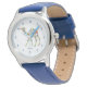 Kinderuhr aus Edelstahl mit blauem Lederarmband