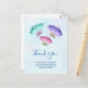 Vielen Dank Postcard mit einem delikaten femininen Design. 3 Schmetterlinge in Aquarellfarbe, rosa, lila und grün gestrichen. Ein hellblauer Aquarell mit Hellrosa.