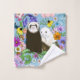 Ein Schokoladenbrötler und Champagner-Frettchen sitzen inmitten farbenfroher Blume in blauer Umgebung.
