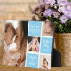 Die Geschenkidee der ersten Mutter - Eine moderne Foto-Plakette mit einem Collage-Raster erstellt mit 4 Bildern und einer Nachricht auf einem modernen blauen Block . Ideal für eine Baby-Junge-Mutter.
