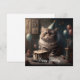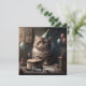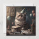 Niedlich flauschige Katze mit Geburtstagstorte und Karte