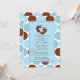 Adorable Fußabdruck Baby Shower Einladung mit Baby Fußspuren Set auf einem blau-braunen Polka Punkt Hintergrund. Matching Artikel in unserem Shop verfügbar. Ideal für eine Babydusche.