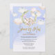 Feiern Sie die bevorstehende Ankunft Ihres wertvollen Babys mit diesem eleganten, schicken, hübschen und verträumten "Shower by Mail Invitation" mit einem wunderschönen Waldkaninchen in rosa Pyjamas, das auf rosa Blumenblättern schläft, und einem Polka Dot Ballonkranz vorne. Der Titel zeigt Goldfolie wie Kalligrafie. Der Hintergrund zeigt Wolken auf lila blauen Farbverlauf. Sämtliche Texte sind so vorbereitet, dass Sie mit Ihrem Baby Duschdetails einfach und schnell personalisieren können.