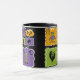 Genießen Sie die schöne Jahreszeit mit einer Touch von Charme! Diese reizvolle Tasse bietet eine bezaubernde Lineup von Halloween-Favoriten - ein Zombie, Frankenstein, Geister, Fledermäuse und spielerische Katzen - die alle in lebhaften Orange-, lila- und Grüntönen gerahmt sind. Coquette Bows fügen eine skurrile, stilvolle Drehung hinzu, sodass jeder Charakter Pop vor dem schwarzen Hintergrund. Ideal, um Ihre Lieblings-heißen Getränke zu geniessen und dabei den Spaß und den festlichen Geist von Halloween zu feiern!