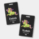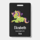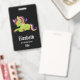 Personalisiertes Namensschild Abzeichen mit einem Frankensteinstil. Lila und grüne Farben. Niedlich.