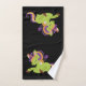 Handtuch-Set mit einem Einhornbild im Stil Frankensteins. Lila und grüne Farben. Niedlich.