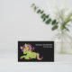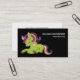 Eine Visitenkarte mit dem Bild eines Frankensteins Stil Einhorn. Lila und grüne Farben. Niedlich.